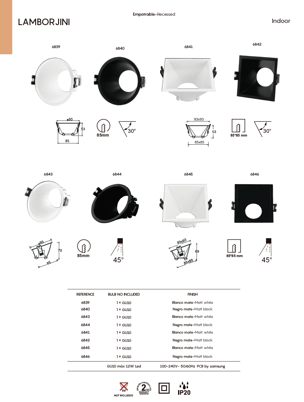 ARO GU10 EMPOTRABLE CÓNICO LAMBORJINI ACABADO NEGRO MATE 6840