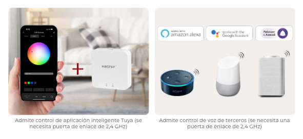 - Admite control de voz de terceros como Alexa, Google Assistant, Yandex Alice, Tmall Genie, Baidu y Xiaomi (se necesita una puerta de enlace de 2.4GHz)