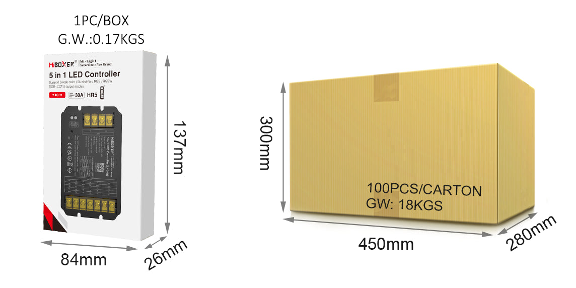 Este controlador adopta la tecnología inalámbrica de 2,4 GHz ampliamente utilizada con características de bajo consumo de energía, transmisión de señal larga y fuerte antiinterferencia, etc. Controlado por control remoto inalámbrico, también con control por teléfono inteligente y control de larga distancia 4G (se necesita puerta de enlace de 2,4 GHz). El controlador tiene transmisión automática y sincronización automática, y con brillo, modo de salida CCT, RGB, RGBW y RGB+CCT. Un mando a distancia compatible controla muchos controladores al mismo tiempo. Ampliamente utilizado en el control de la iluminación de hoteles y del hogar.