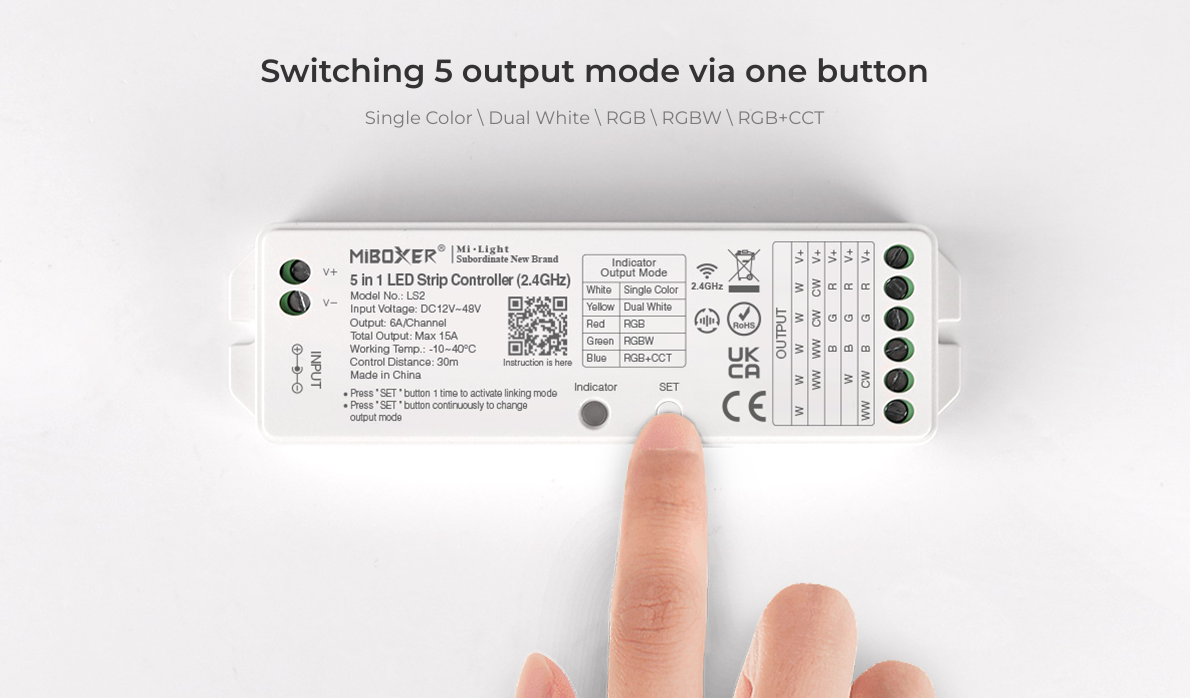 CONTROLADOR LED LS2 PARA TIRAS LED 5 EN 1 DC12-48V MAX 15A RF 2.4GHz