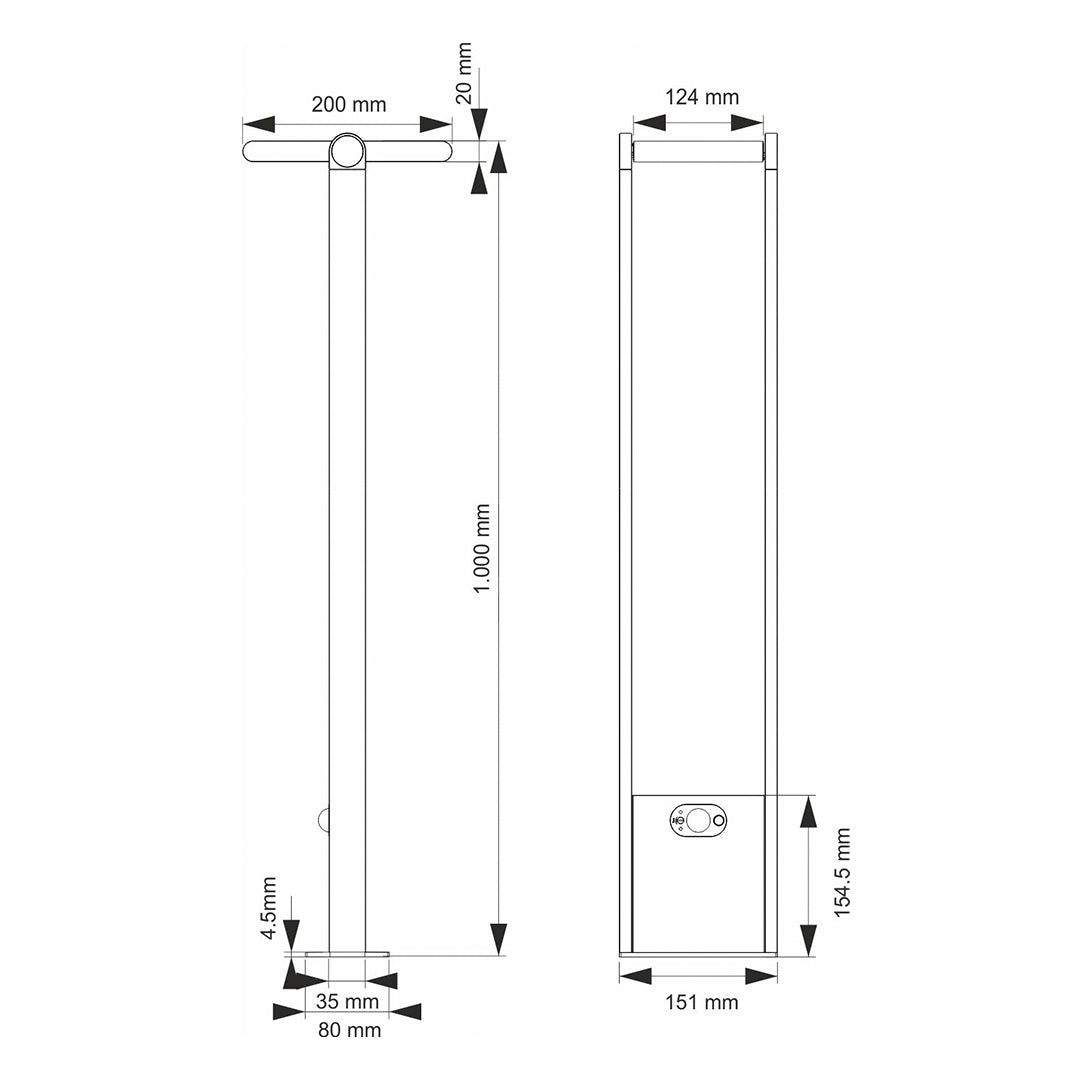 Esta baliza para exteriores cuenta también con un sensor crepuscular programable capaz de detectar la cantidad de luz que hay en el ambiente y regular su intensidad, encendido y apagado. Cuando este sensor detecta que la cantidad de luz natural es insuficiente o menor a los 25 lux, se activa el sistema de iluminación, mientras que también ofrece el apagado de este al amanecer. Ambos sensores están situados en la parte inferior de la luminaria. Está específicamente diseñada para usarse cuando se carece de instalación técnica de electrificado.