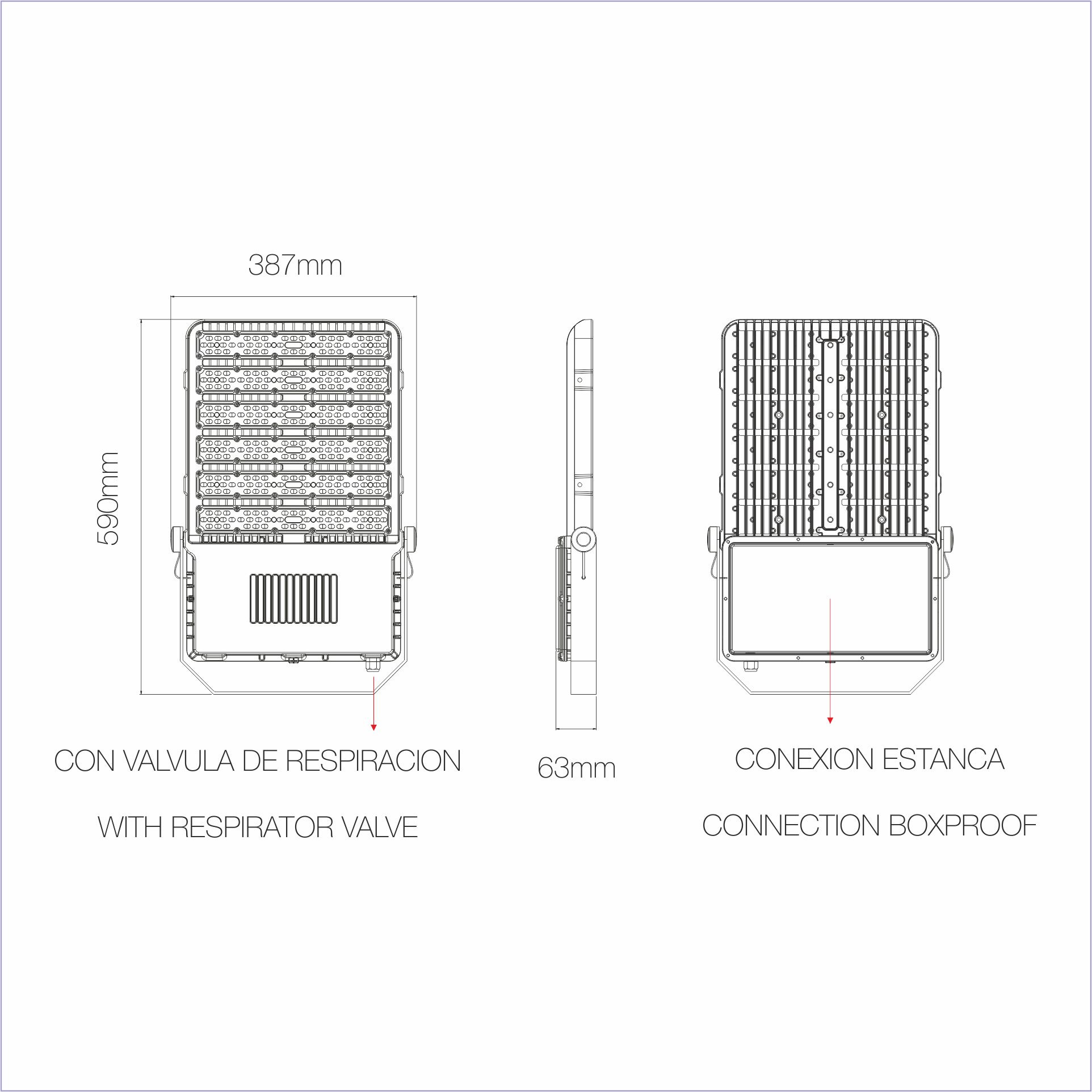 FOCO PROYECTOR KRION NEGRO LED 220V 400W