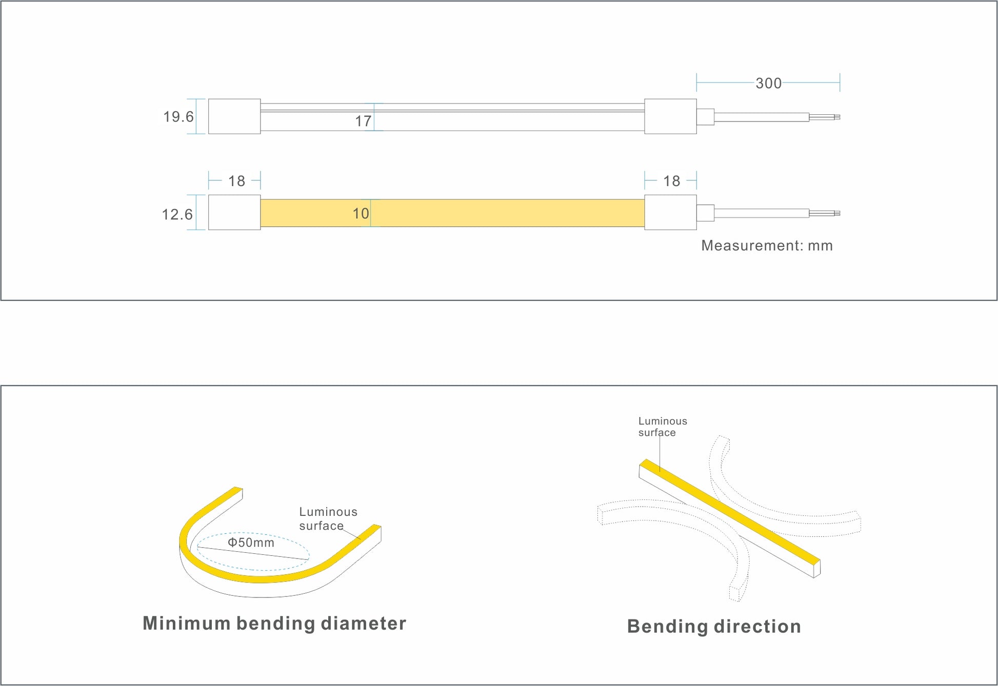 LED NEON FLEX DIRECTO AC220V 10W/m SMD2835 120LED/M SIDE VIEW RC0817 CORTE CADA 10CM IP67 2700K