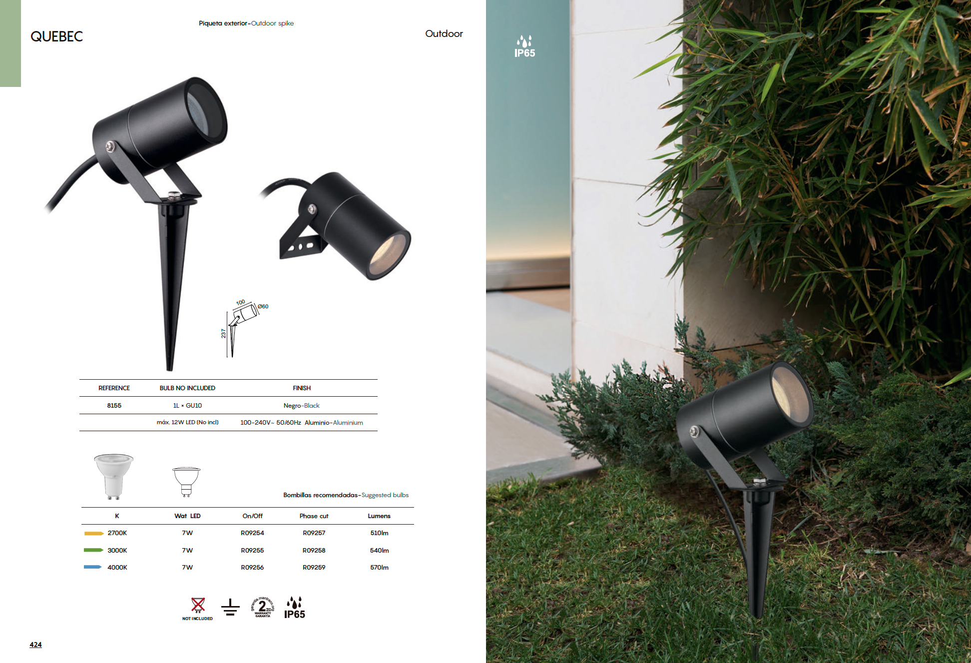PIQUETA EXTERIOR JARDÍN QUEBEC CON PORTALÁMPARAS GU10 IP65 ACABADO NEGRO - 8155